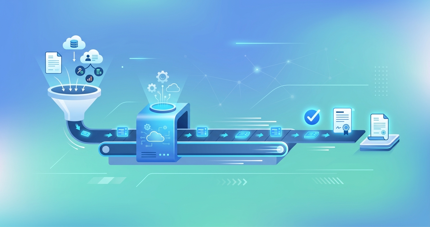 The typical automated underwriting pipeline in 2026 follows this sequence: